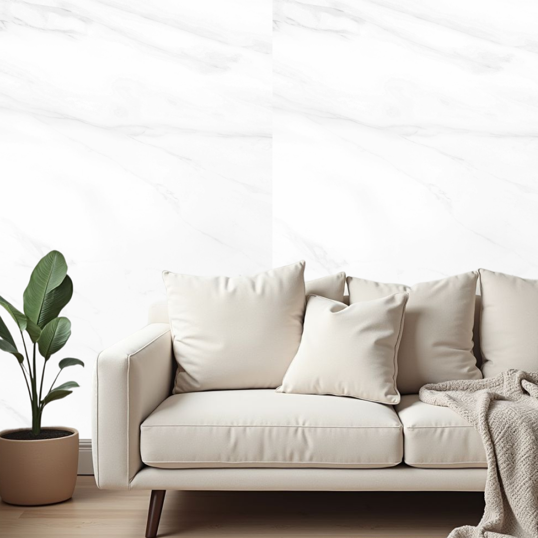 Placa decorativa con acabado tipo mármol blanco, ideal para renovar espacios interiores con una estética moderna y elegante sin obras complejas.
