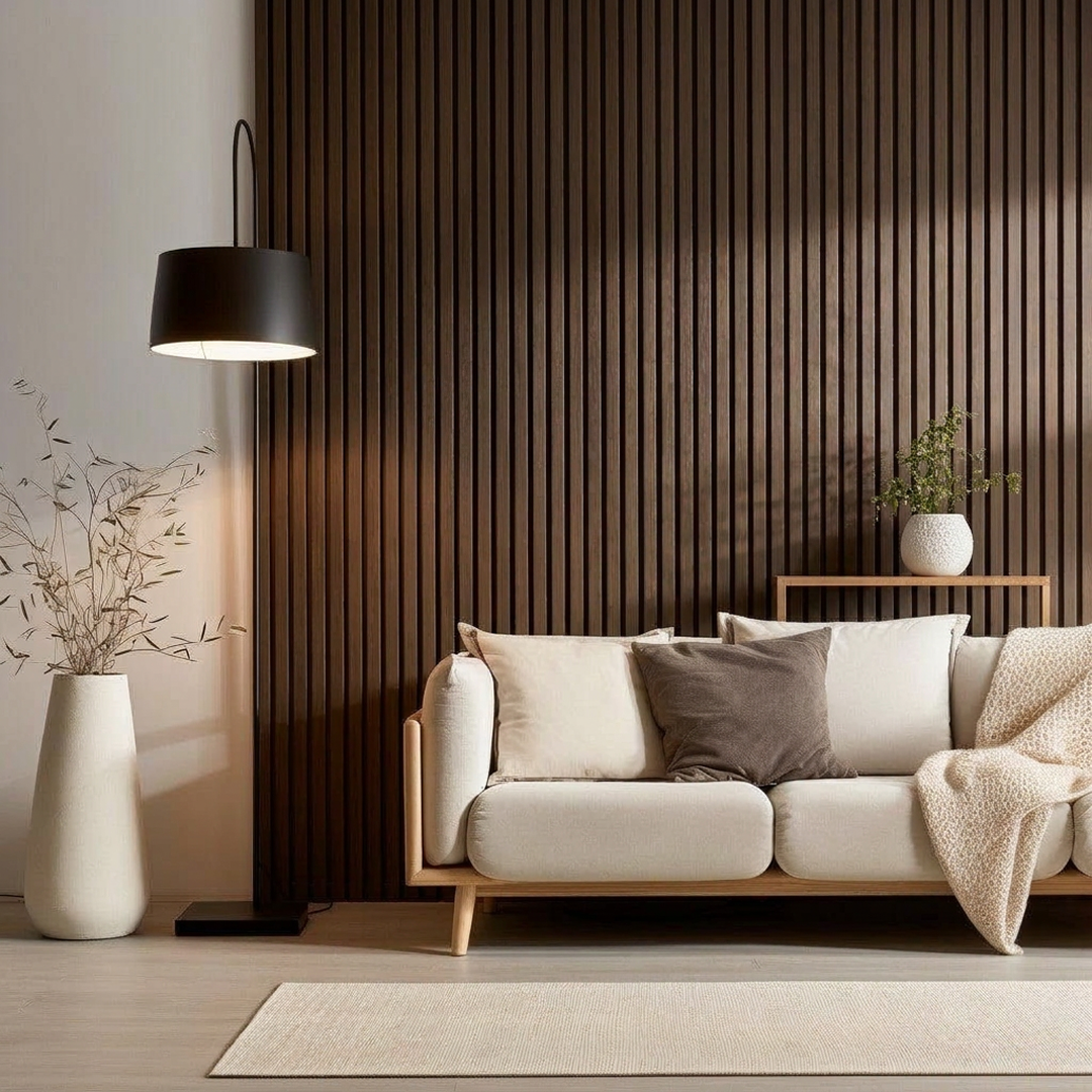 Panel decorativo interior en WPC en color coffee, ideal para aportar calidez, textura y diseño a espacios modernos sin necesidad de mantenimiento.