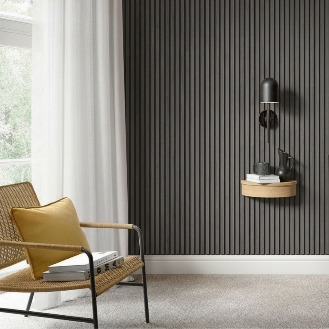 Panel decorativo interior en WPC en color light gray, ideal para aportar calidez, textura y diseño a espacios modernos sin necesidad de mantenimiento.